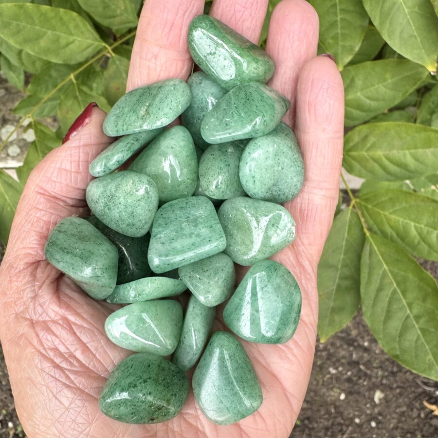 A green variety of quartz with sparkly inclusions of mica, traditionally associated with luck, good fortune, abundance, growth and renewal.